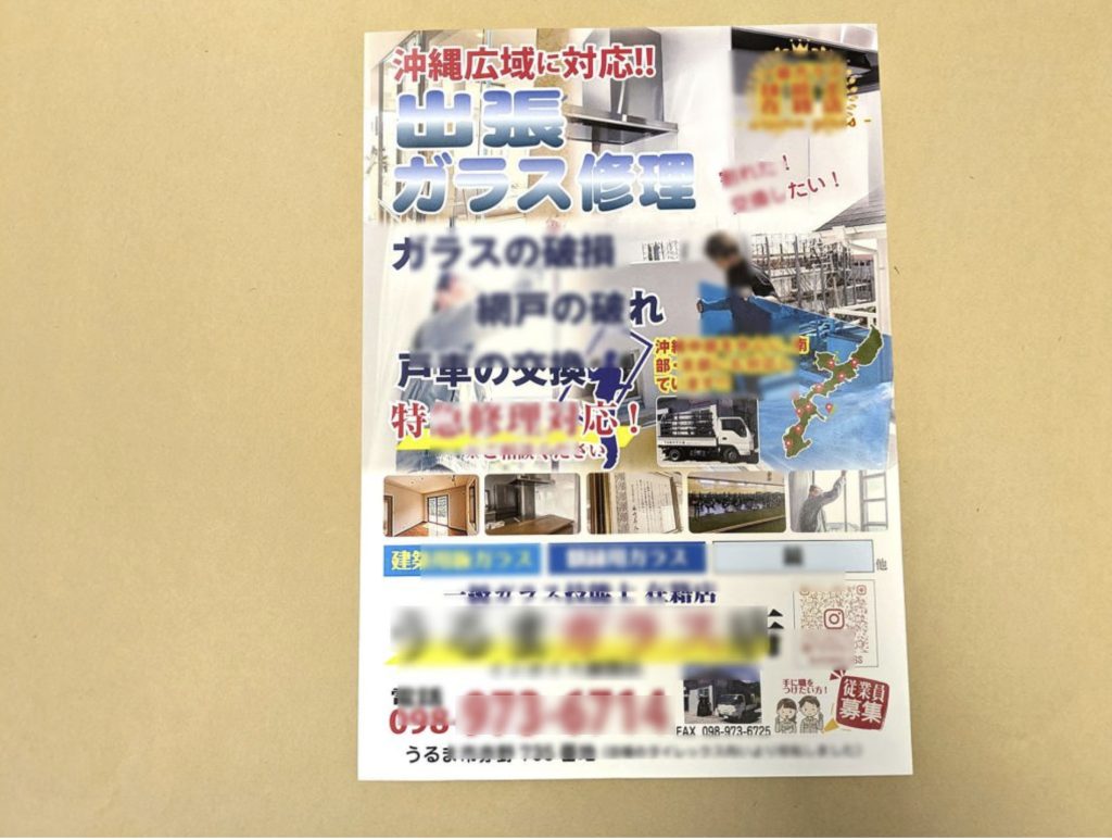【うるま市】ガラス店様 営業促進用チラシ(大量部数)
